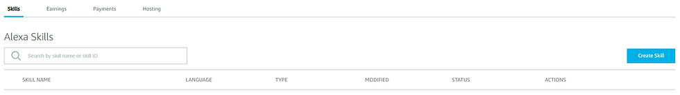 Choose a name for your skill and the default language that you will be using to talk to Alexa requesting this skill. Once this is done click on "Create skill".